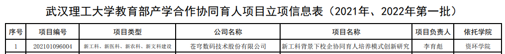 附件: 教育部产学合作协同育人项目立项信息表(2021年、2022年第一批)