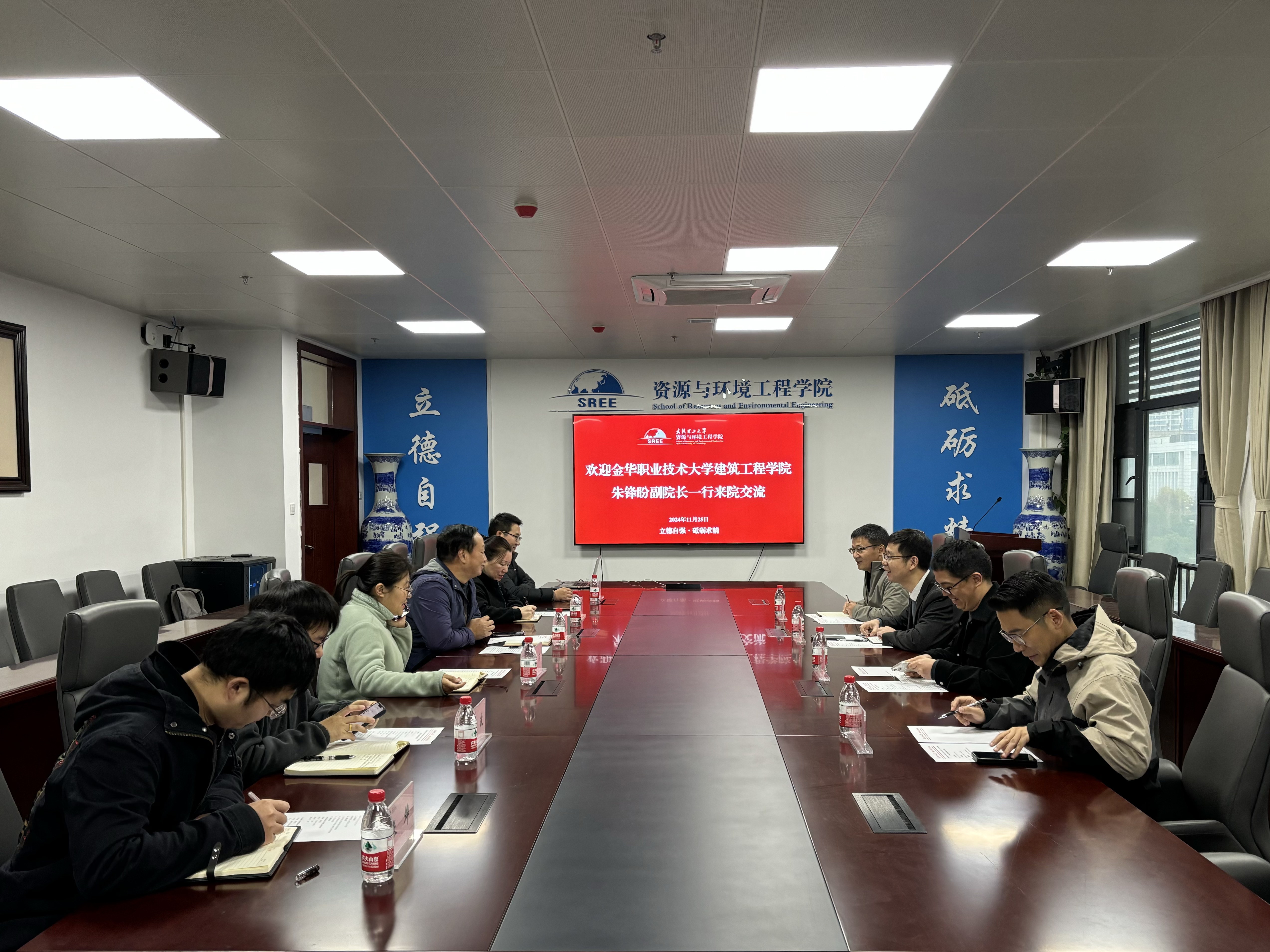 11月25日上午9点,金华职业技术大学建筑工程公司副经理朱锋盼、实训中心负责人李卫平及教师焦向科、姚永鹤一行来访公司,公司副经理马中杰、科研与基地办公室主任李萱、行政办公室主任赵和平、党委办公室秘书马丽、矿物加工与材料系教师陈波、张晔、环境科学与工程系教师李源参会,就科研团队建设管理经验、科研成果转化应用、教科研实验室建设运行等事宜进行洽谈交流。