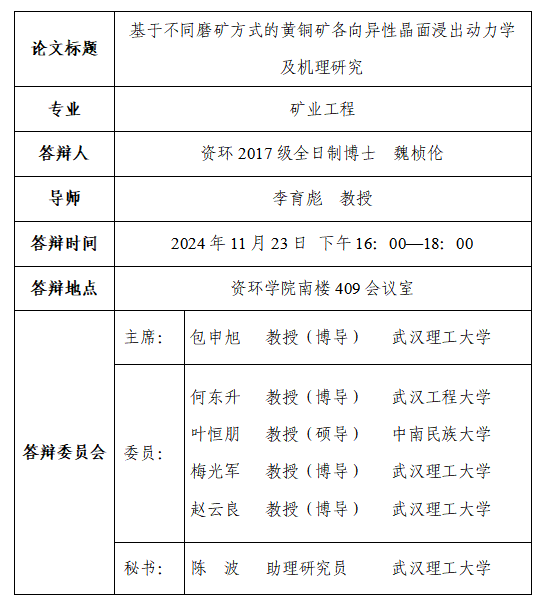 【bw必威西汉姆联官方网站】博士魏桢伦学位论文答辩公告